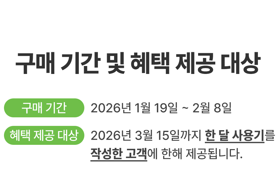 • 한달 사용 후기는 3월 19일 이후 일괄 발송됩니다.