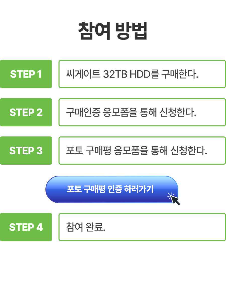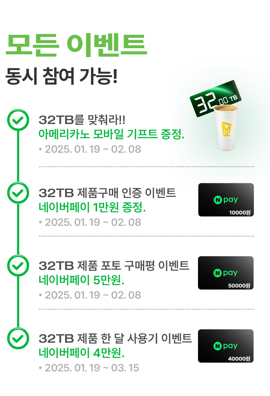 • “32TB를 맞춰라 / 제품구매 인증 이벤트 / 포토 구매평이벤트” 는 공지 일정에 따라 순차적으로 발송됩니다.