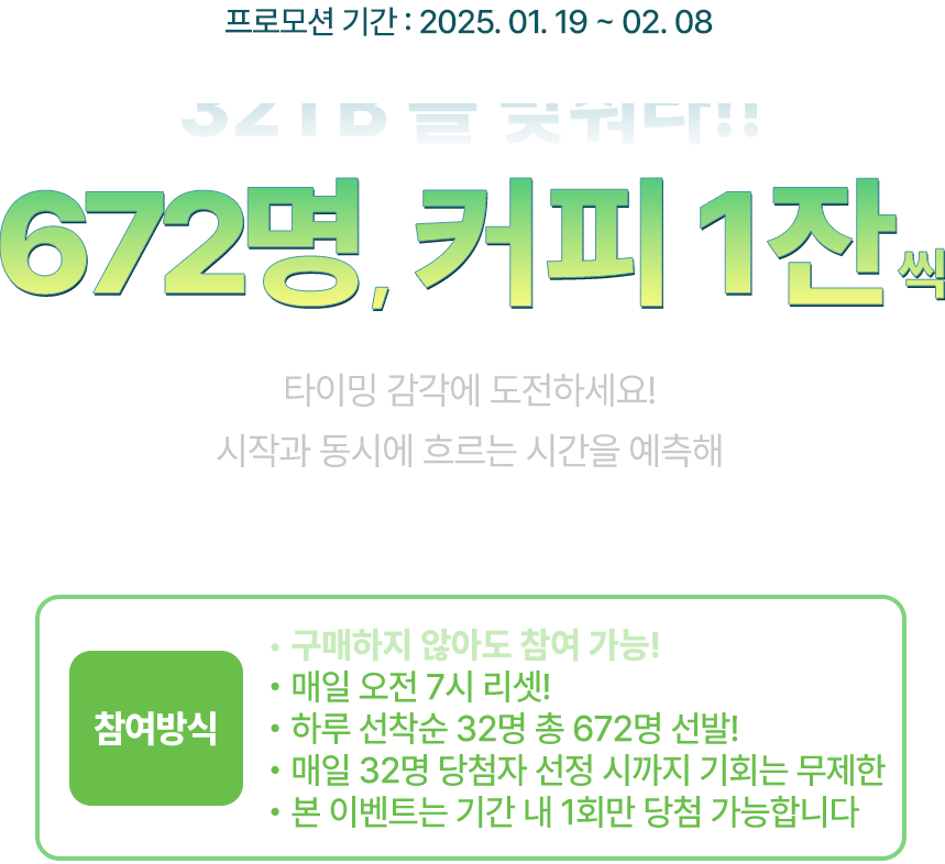 └ 1/26(월) ~ 2/1(일) 구매 및 이벤트 신청/당첨 완료 건 : 2/5(목) 모바일 발송